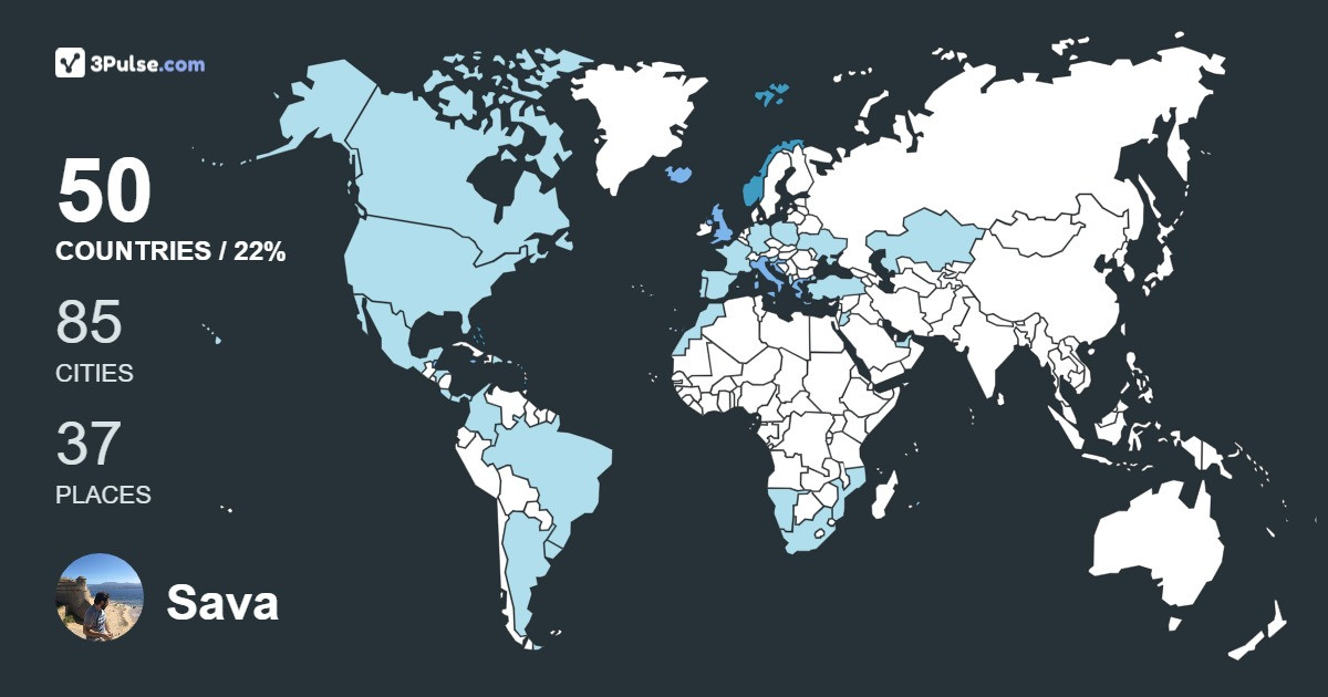 Карта путешествий на 3Pulse.com - возможность сохранить воспоминания о ваших путешествиях.