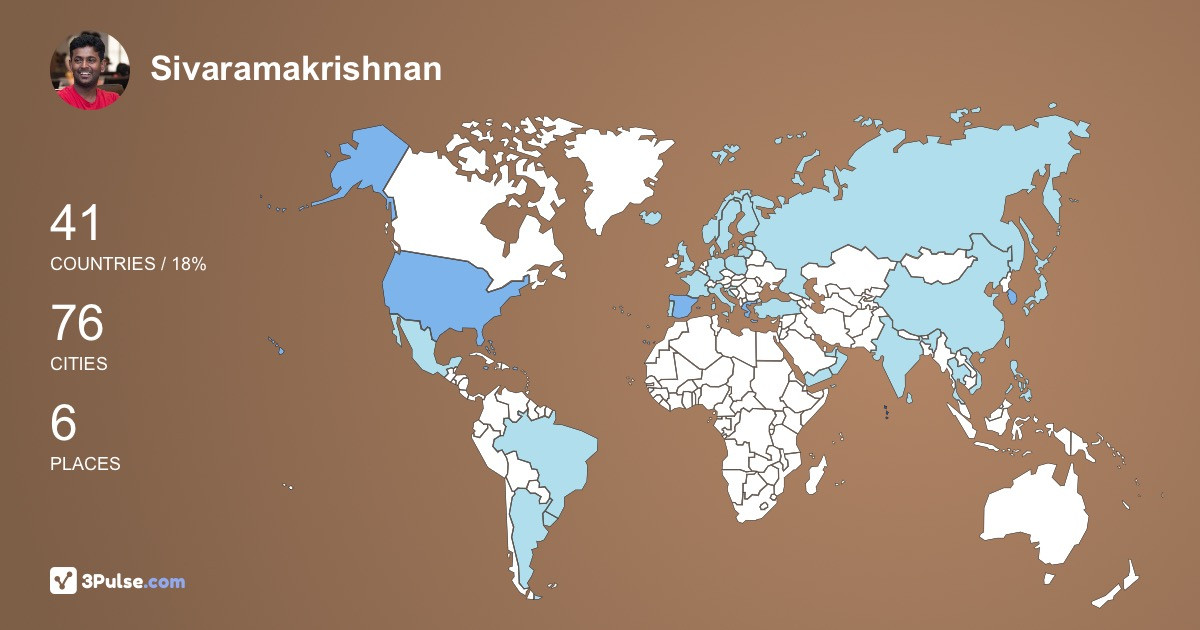 Войдите, чтобы узнать подробнее о путешествиях Sivaramakrishnan Vijayaragavan