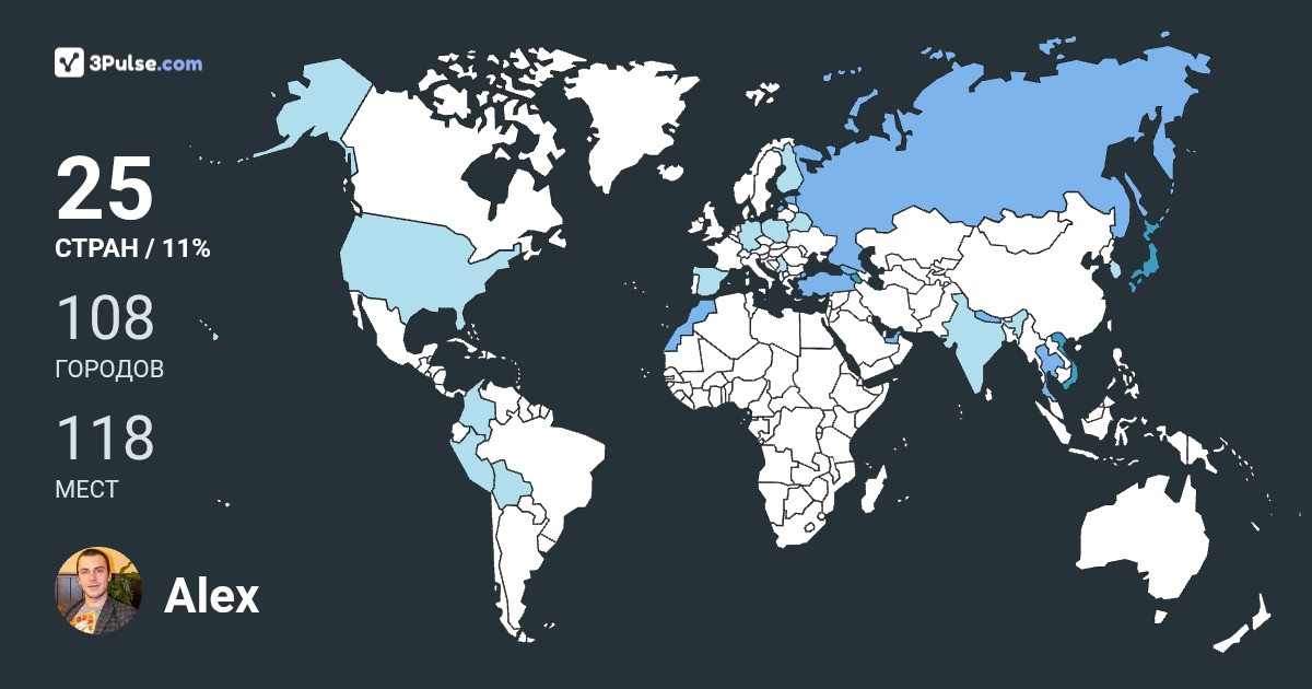 Карта путешествий на 3Pulse.com - возможность сохранить воспоминания о ваших путешествиях.