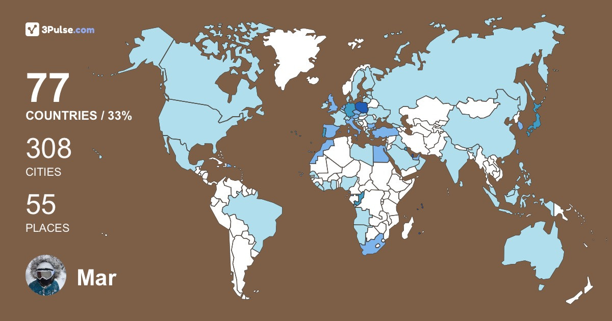 Карта путешествий на 3Pulse.com - возможность сохранить воспоминания о ваших путешествиях.