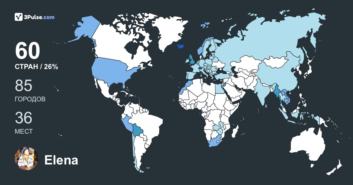 Карта путешествий на 3Pulse.com - возможность сохранить воспоминания о ваших путешествиях.