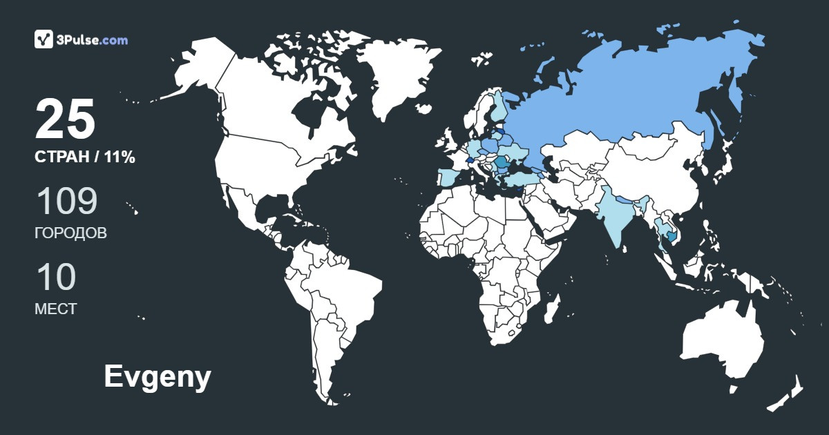 Карта путешествий на 3Pulse.com - возможность сохранить воспоминания о ваших путешествиях.