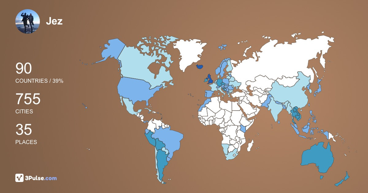 Войдите, чтобы узнать подробнее о путешествиях Jez Darr
