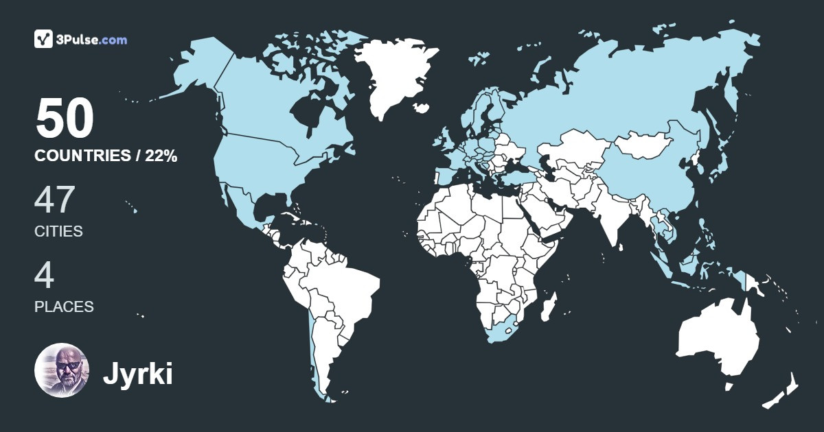 Log in to see more about travels of Jyrki Appelgren