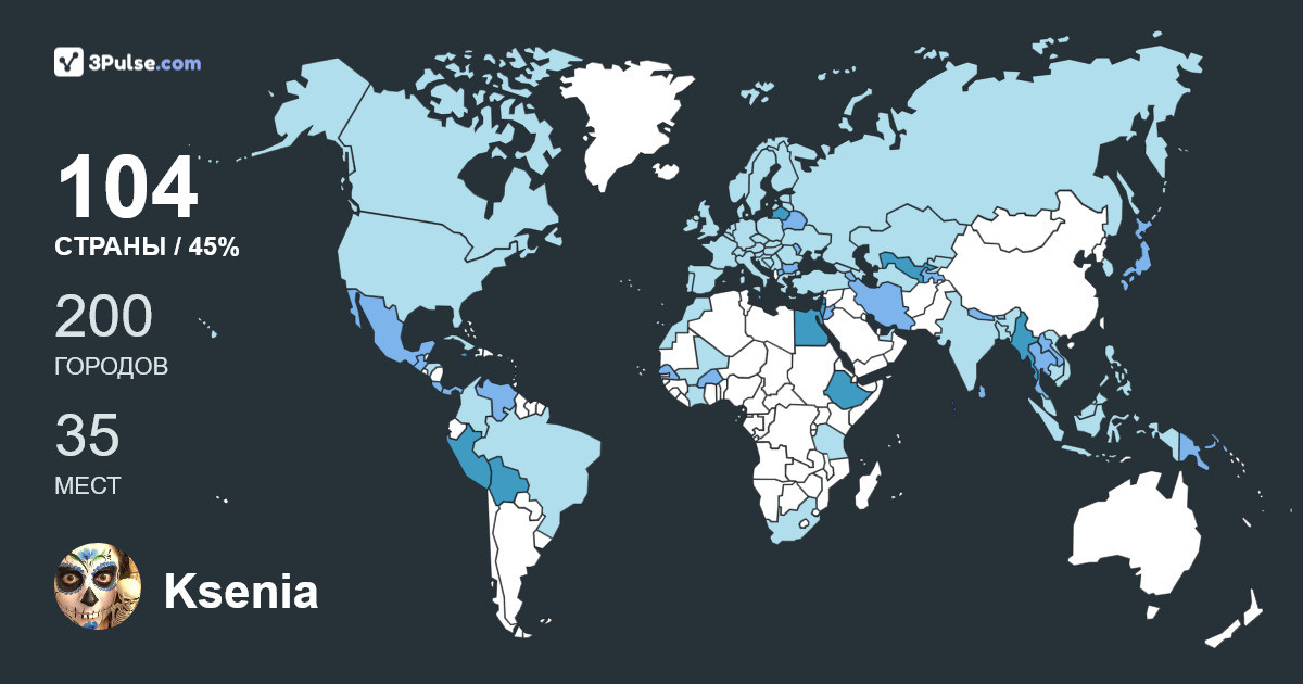 Карта путешествий на 3Pulse.com - возможность сохранить воспоминания о ваших путешествиях.
