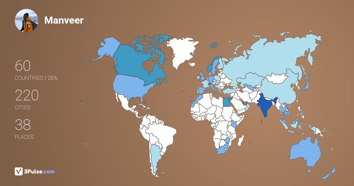 Войдите, чтобы узнать подробнее о путешествиях Manveer Talekar