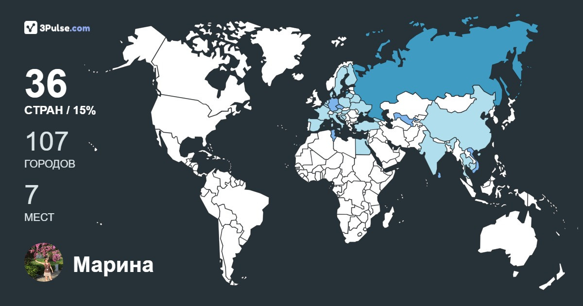 Карта путешествий на 3Pulse.com - возможность сохранить воспоминания о ваших путешествиях.