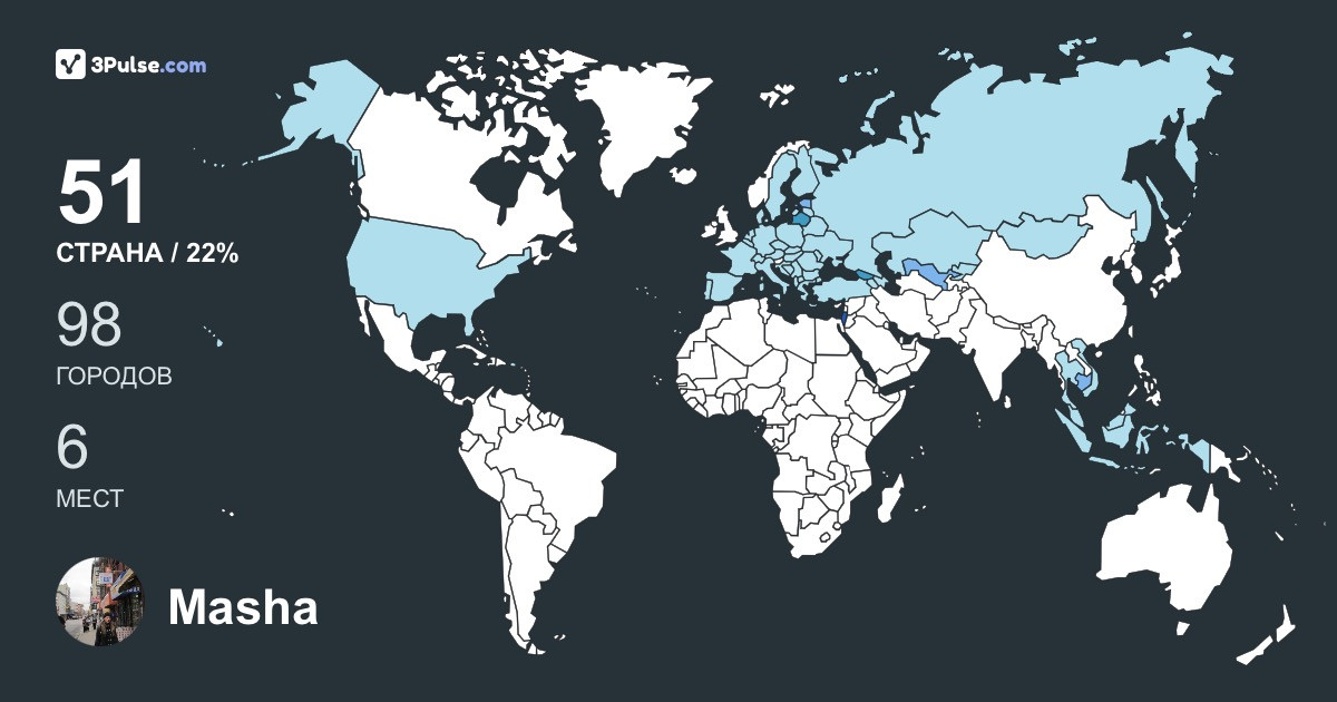 Карта путешествий на 3Pulse.com - возможность сохранить воспоминания о ваших путешествиях.