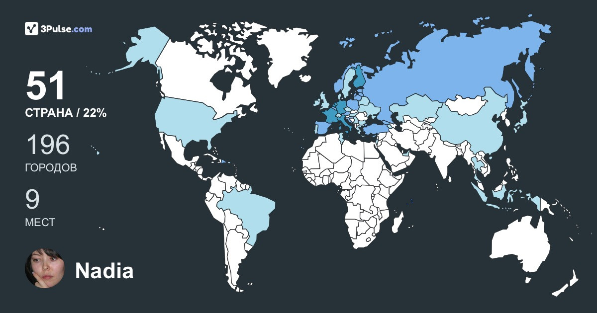 Карта путешествий на 3Pulse.com - возможность сохранить воспоминания о ваших путешествиях.