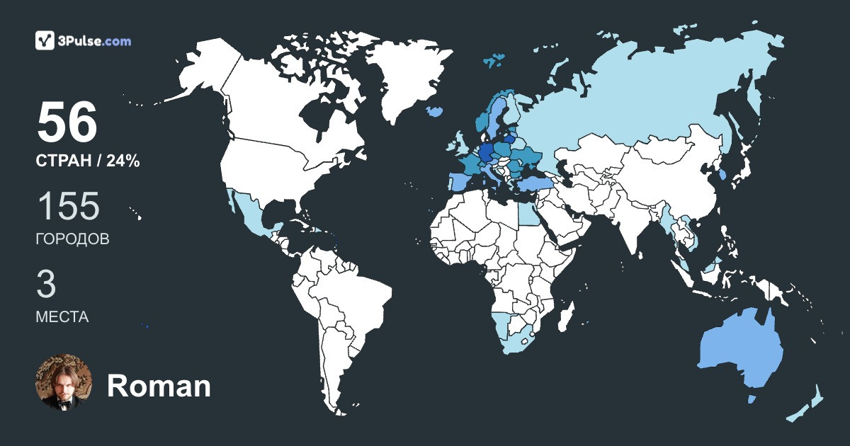 Карта путешествий на 3Pulse.com - возможность сохранить воспоминания о ваших путешествиях.