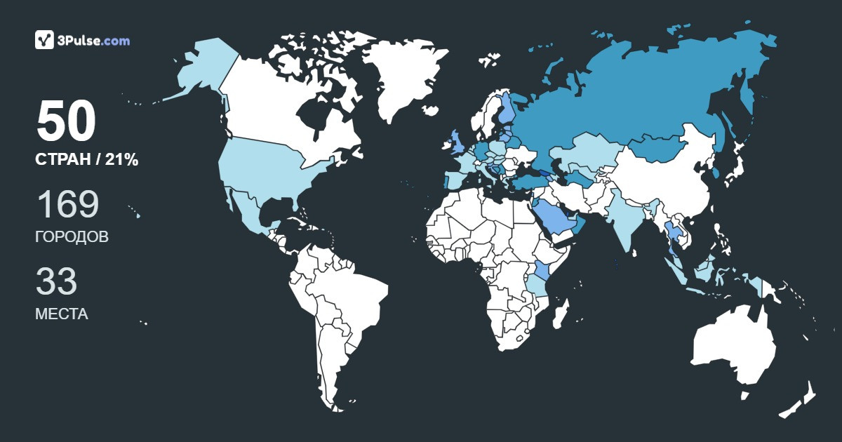 Карта путешествий на 3Pulse.com - возможность сохранить воспоминания о ваших путешествиях.